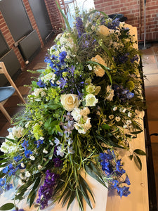 Kistepynt er en smuk og traditionel måde at sige farvel i kirken eller kapellet. Kistepynten håndbindes og sammensættes af vores erfarne blomsterdekoratør og lægges oven på kisten. Hvis du vælger at få kistepynten leveret, sørger vi for at kistepynten bliver leveret og sat på i god tid inden selve begravelsen.